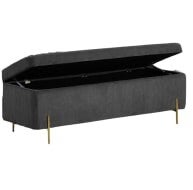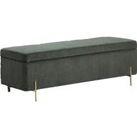 This fantastic storage ottoman is ideal for blankets, throws and so much more. Finished in a wonderful corded fabric and available in both grey and green, it is the ideal pairing with your new Waterford bed. Golden tones on the legs add that extra accent to its rich design.